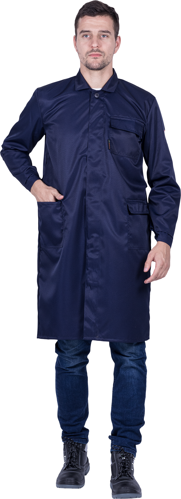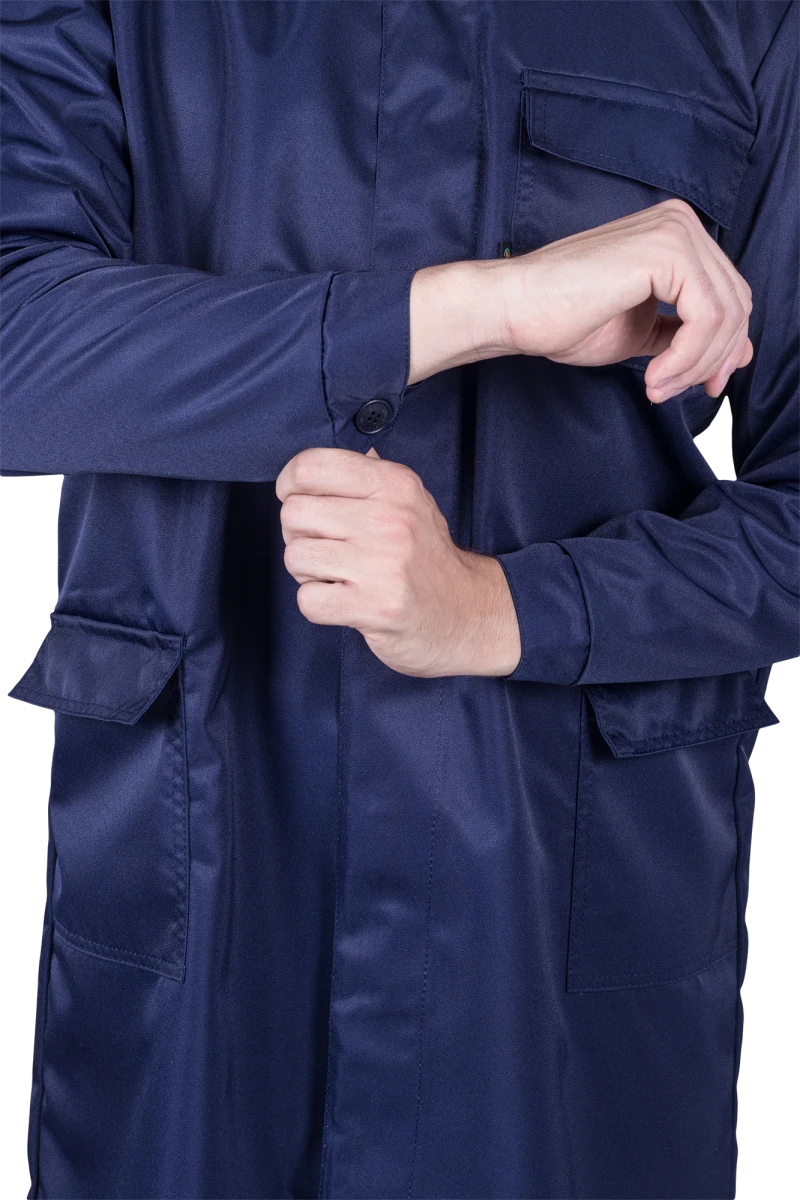 Покупайте Халат мужской от растворов кислот и щелочей, механических воздействий, темно-синий по цене 1573.8 руб. оптом или в розницу в магазине спецодежды СнабТим. Большой выбор защитной одежды, СИЗ и других хозтоваров в Йошкар-Оле. Заказывайте онлайн или по телефону +7 (991) 190-59-22