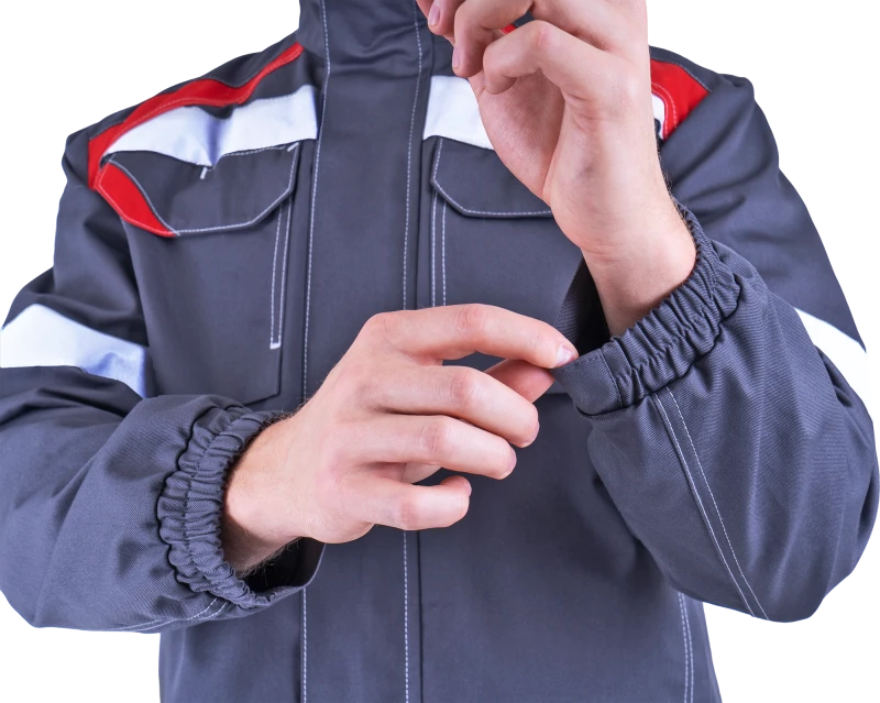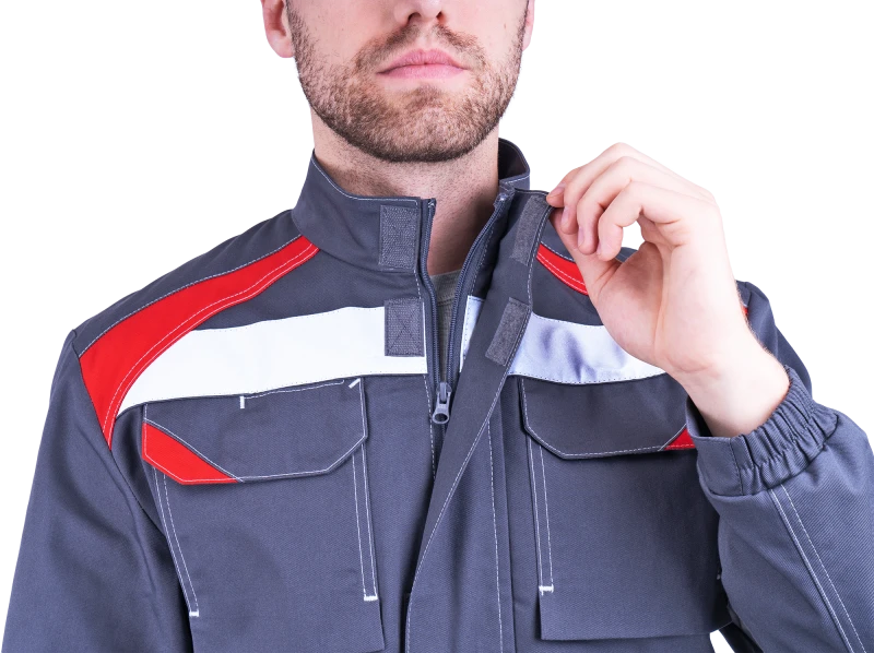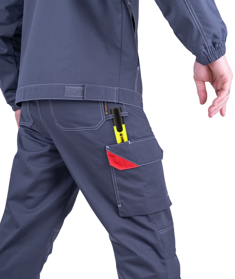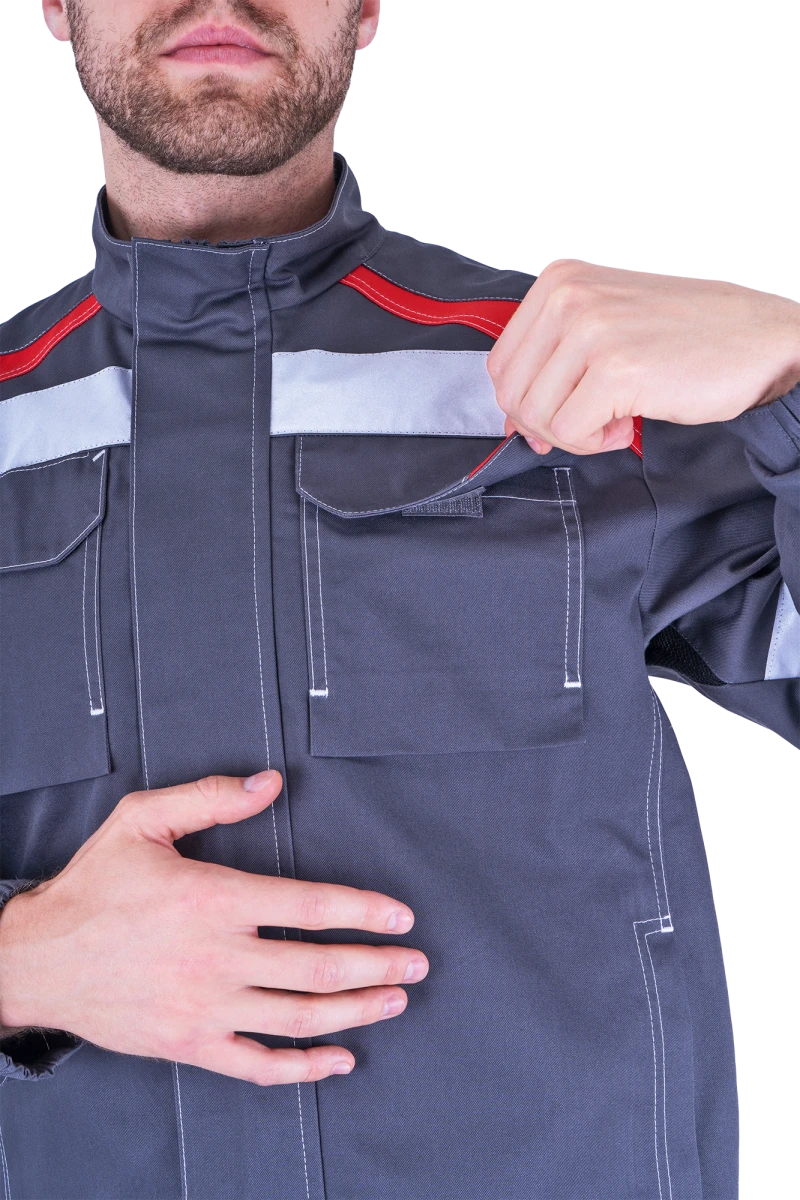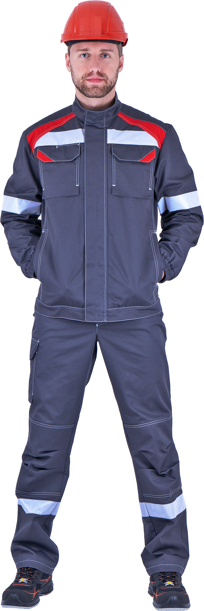 Костюм мужской СТАРАТЕЛЬ от механических воздействий и ОПЗ (куртка, брюки), серый/красный