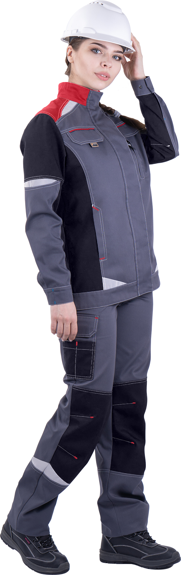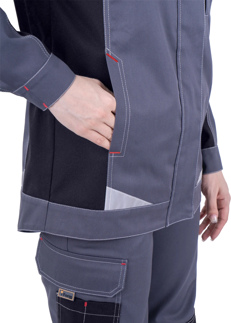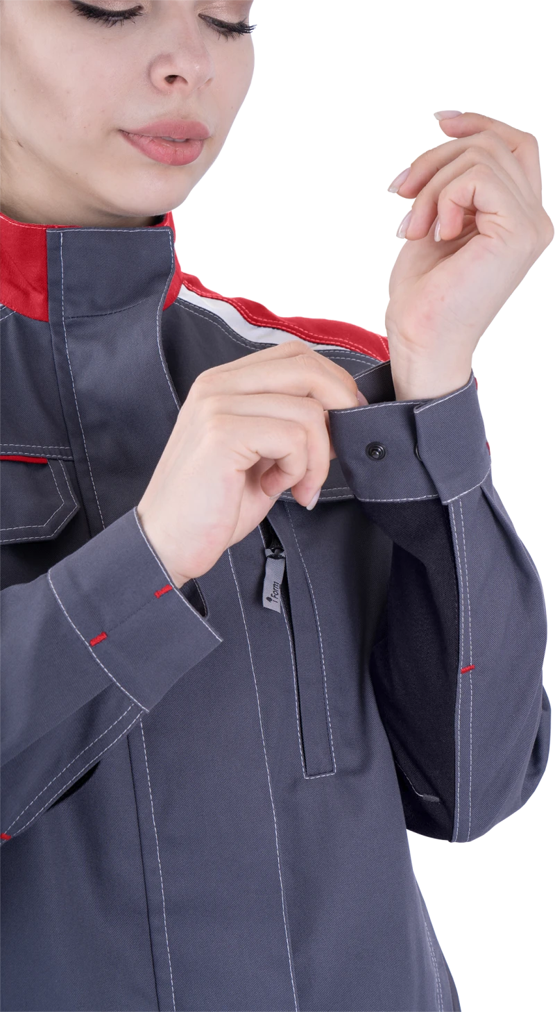 Куртка женская ТУРБО SAFETY от механических воздействий и ОПЗ, серый/чёрный/красный
