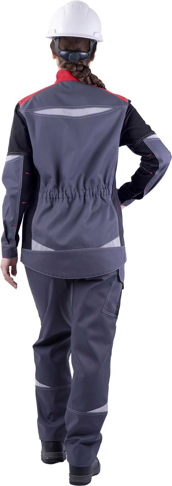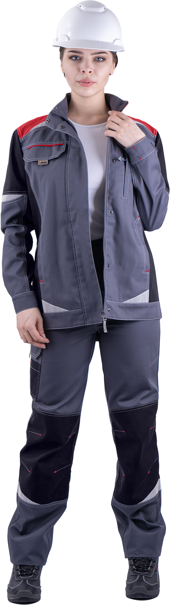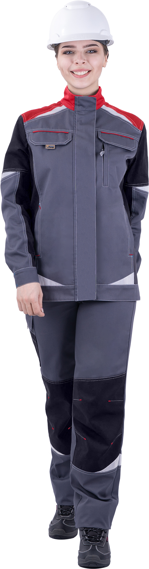 Куртка женская ТУРБО SAFETY от механических воздействий и ОПЗ, серый/чёрный/красный