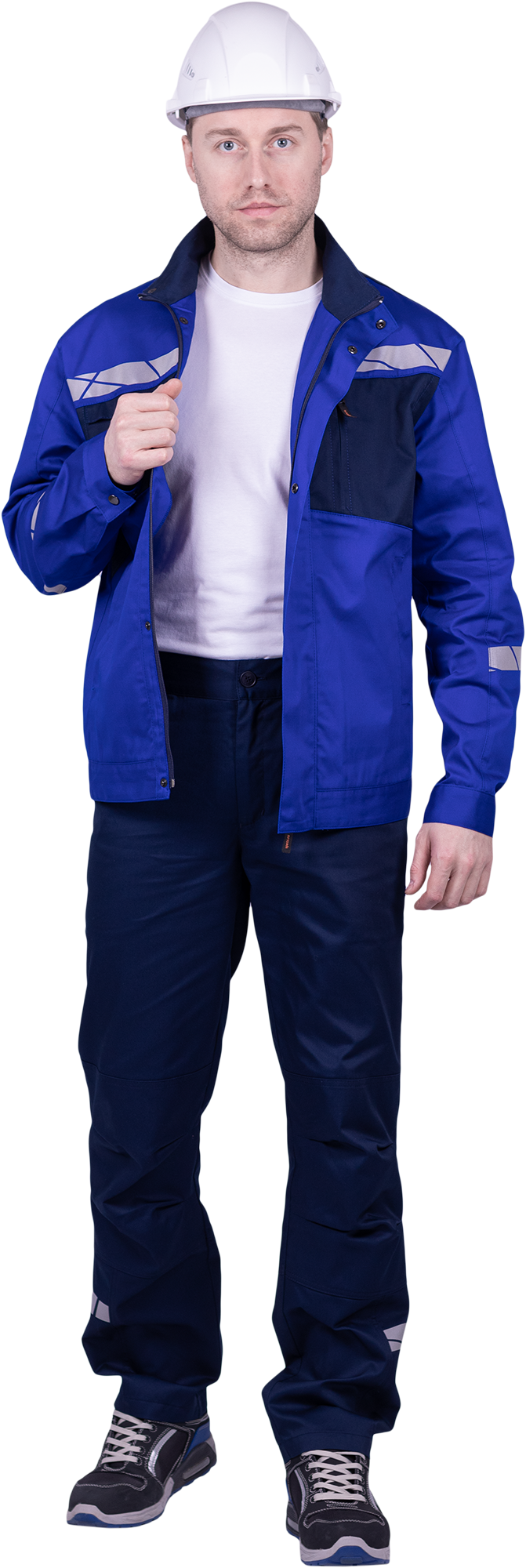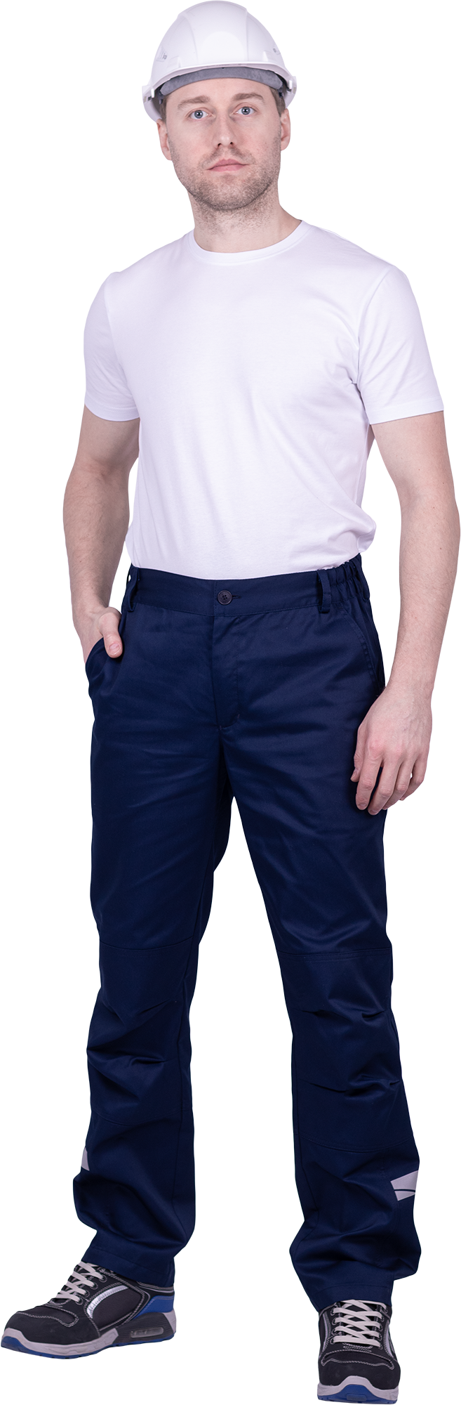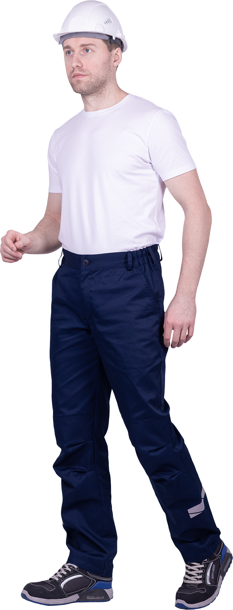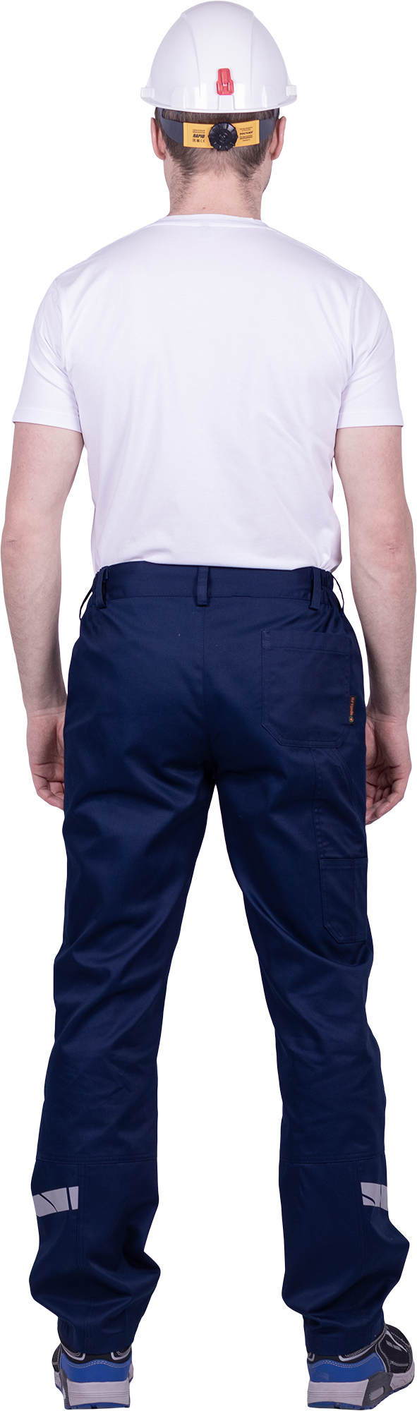 • горизонтальная термоклеевая световозвращающая полоса шириной 30 мм располагается по низу брюк в области боковых швов.