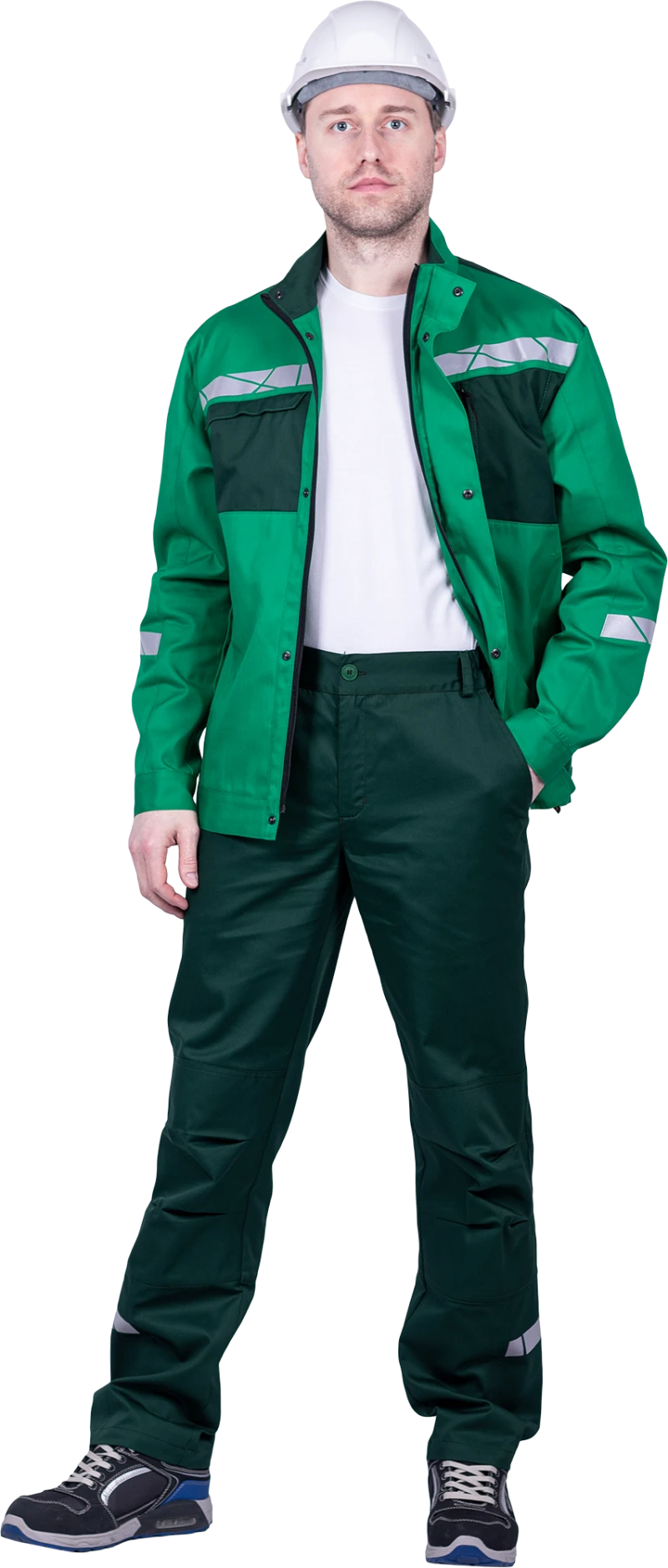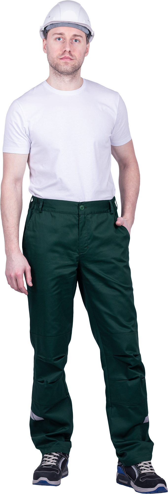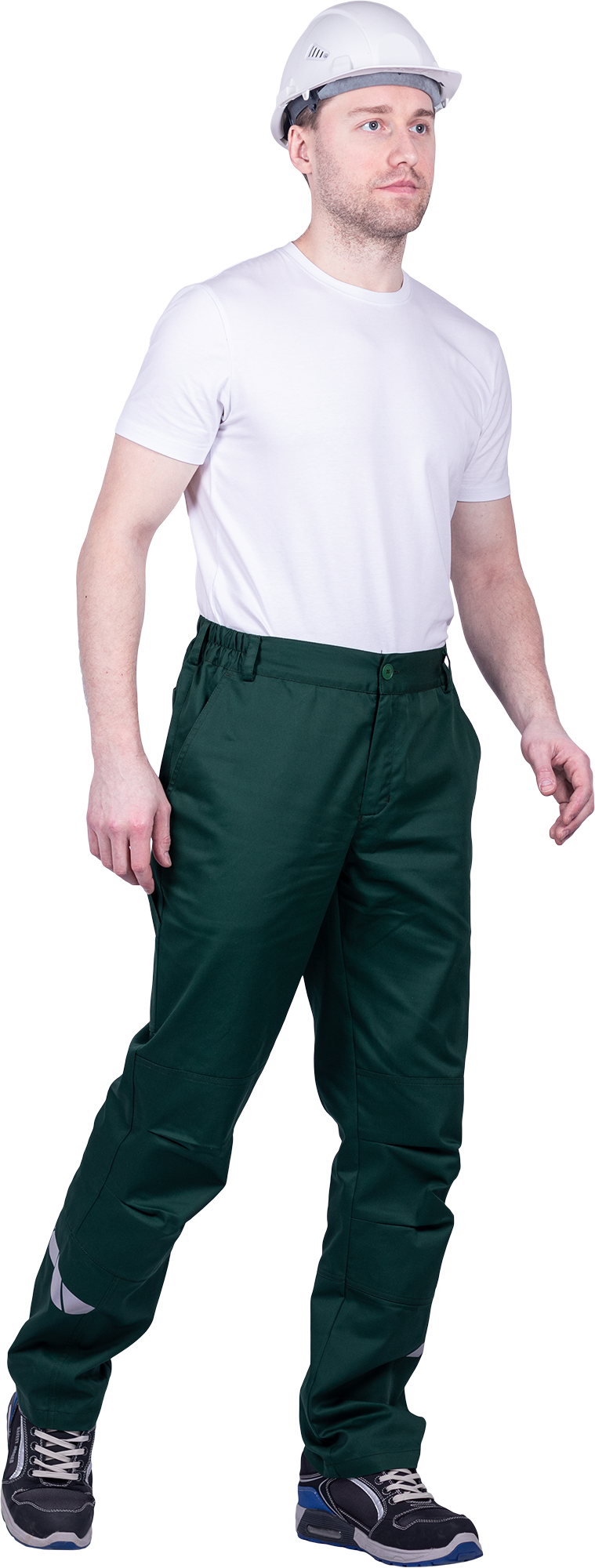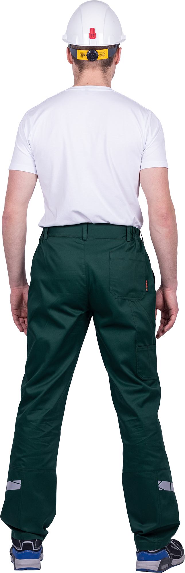 • горизонтальная термоклеевая световозвращающая полоса шириной 30 мм располагается по низу брюк в области боковых швов.