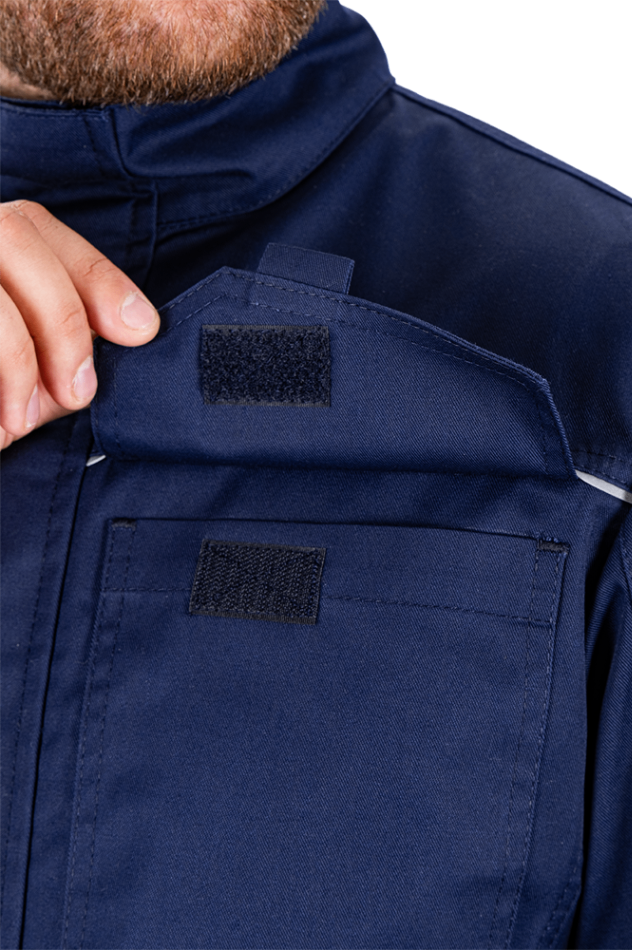 • центральная застежка на молнию с ветрозащитным клапаном на потайных кнопках. Ветрозащитный клапан исключает контакт молнии с оборудованием.
