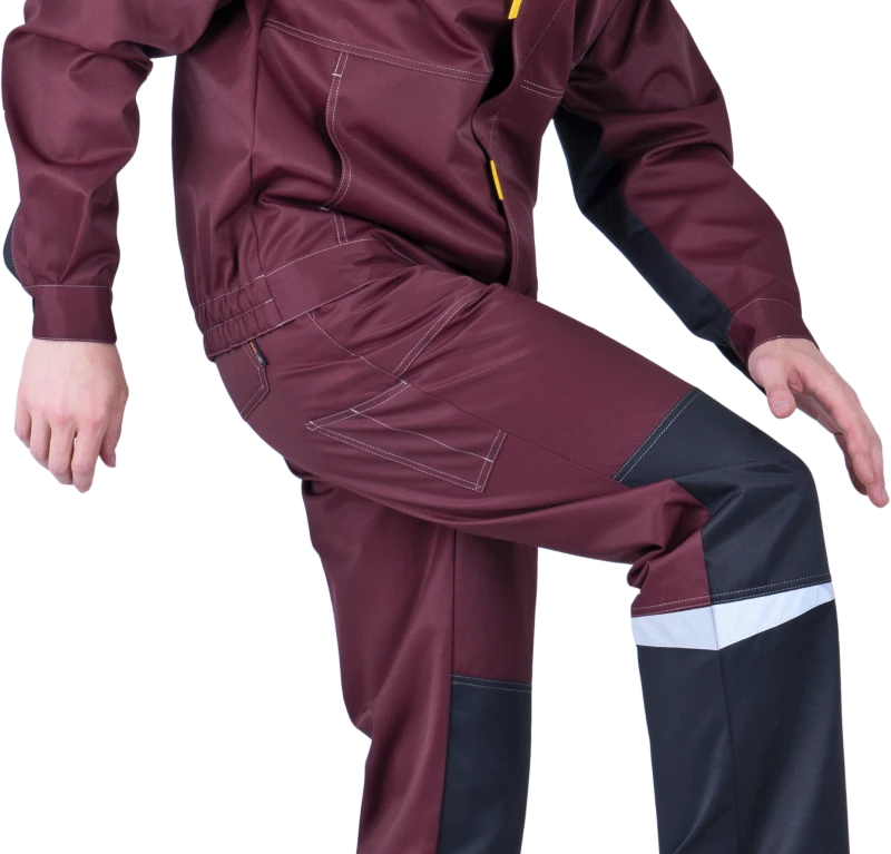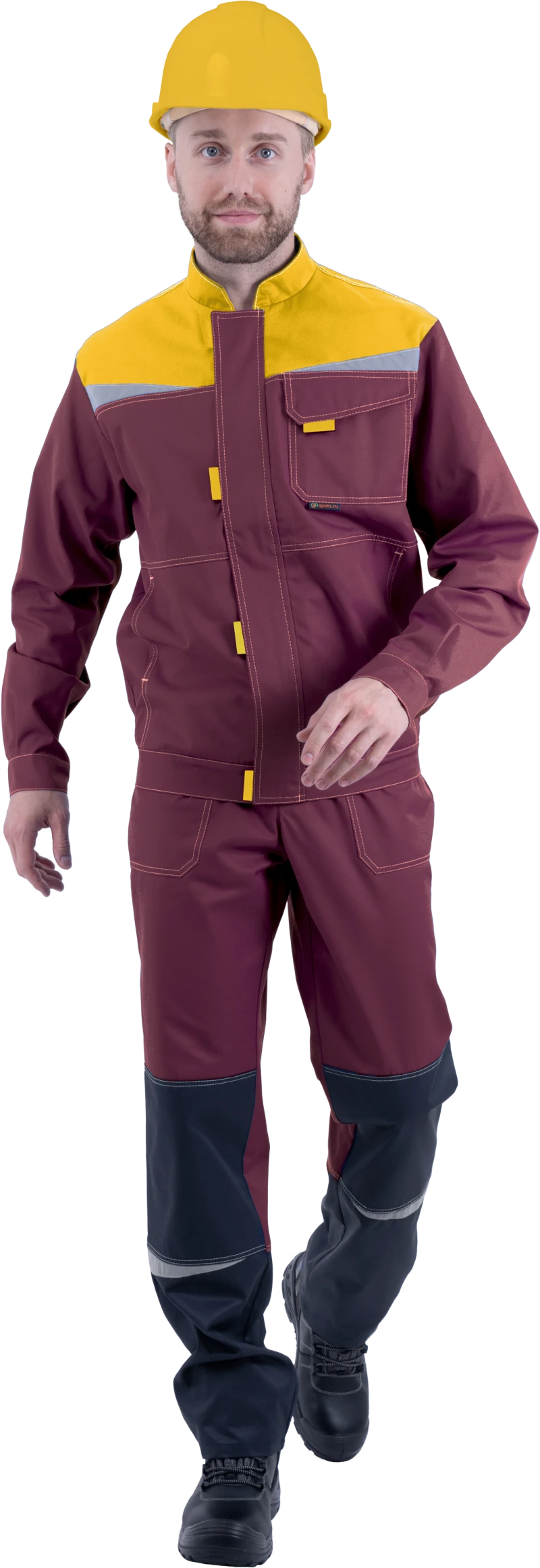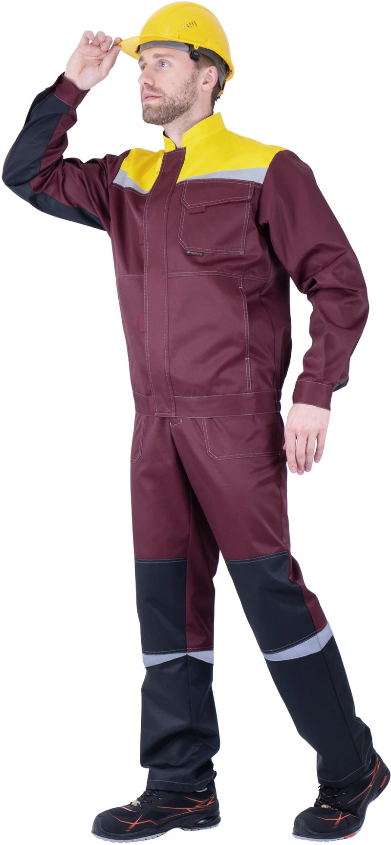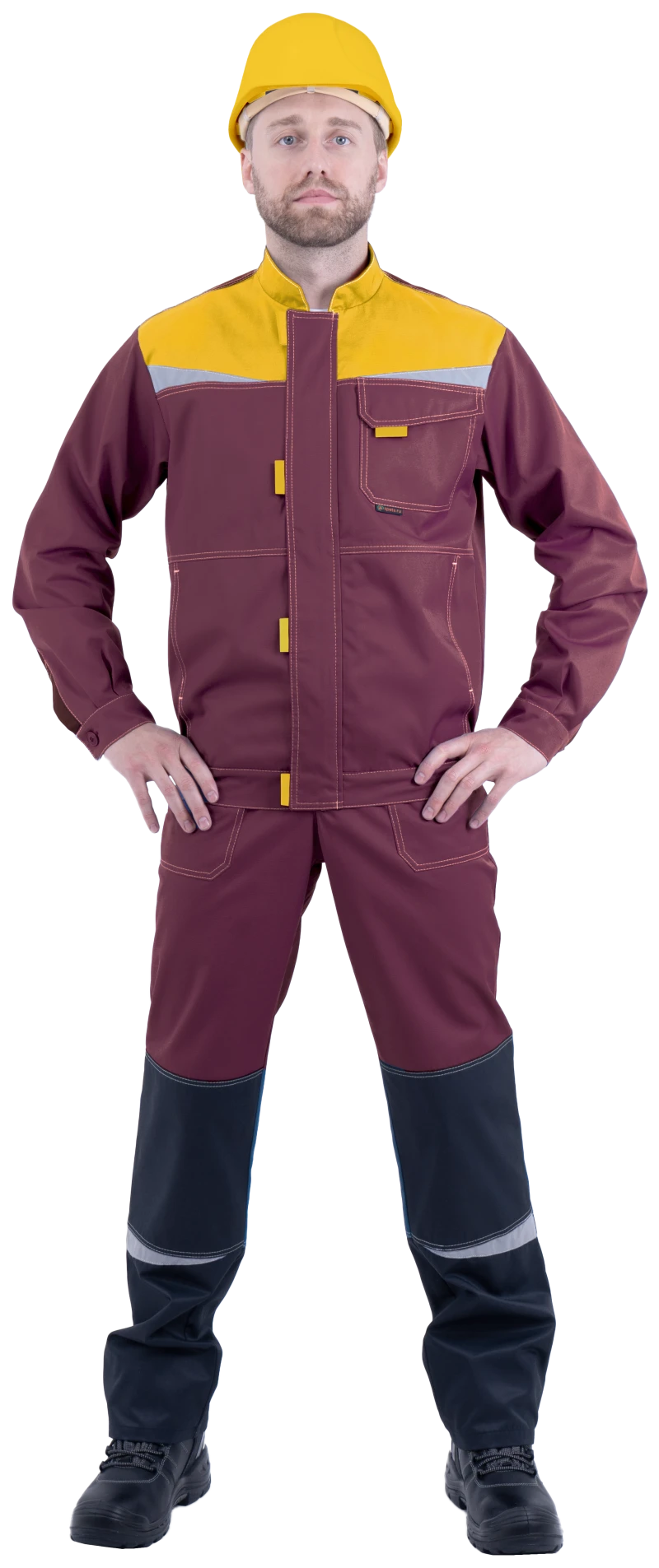 Костюм мужской КМ-10 ЛЮКС от механических воздействий и ОПЗ (куртка, полукомбинезон), бордовый/жёлтый/чёрный