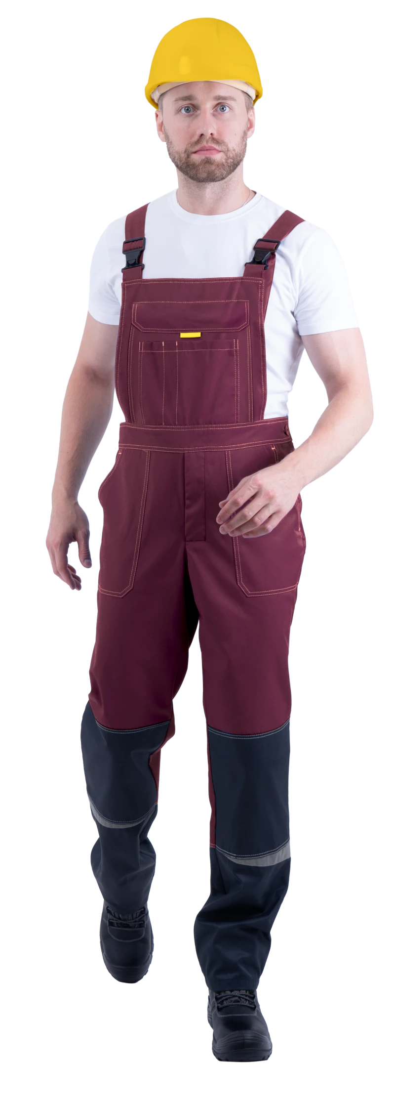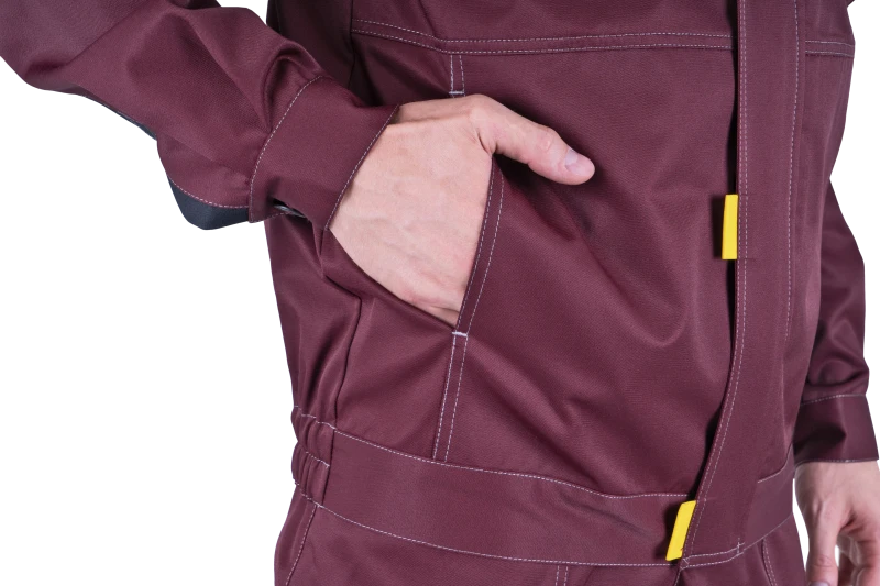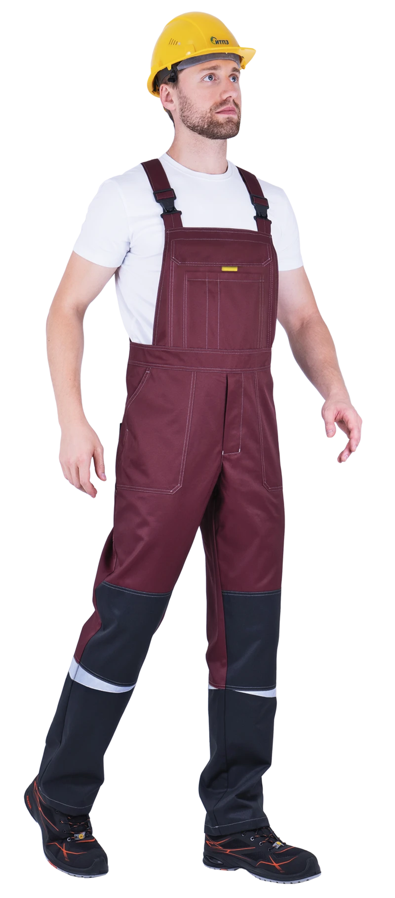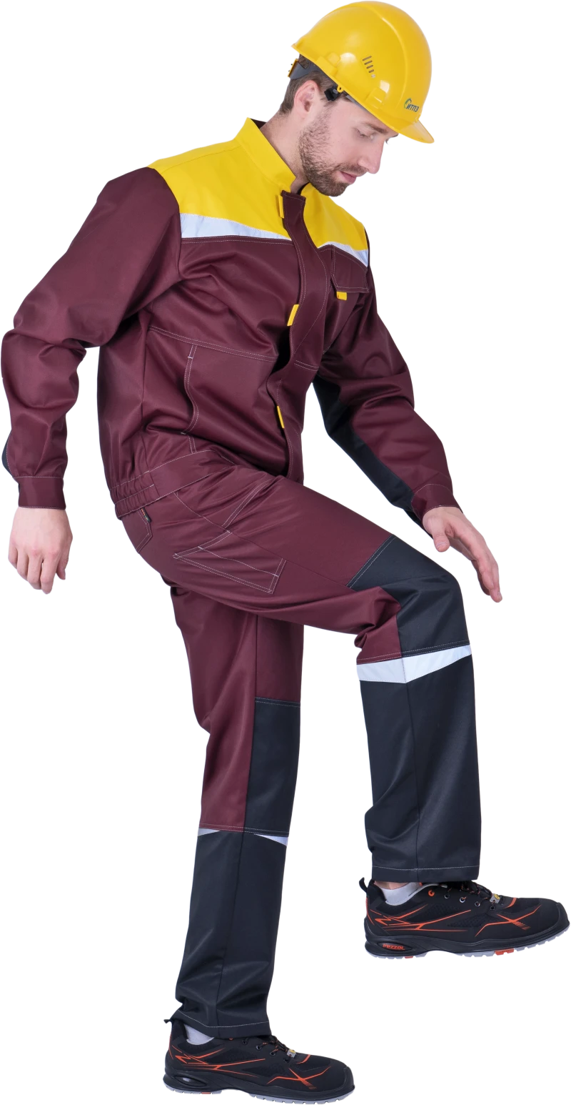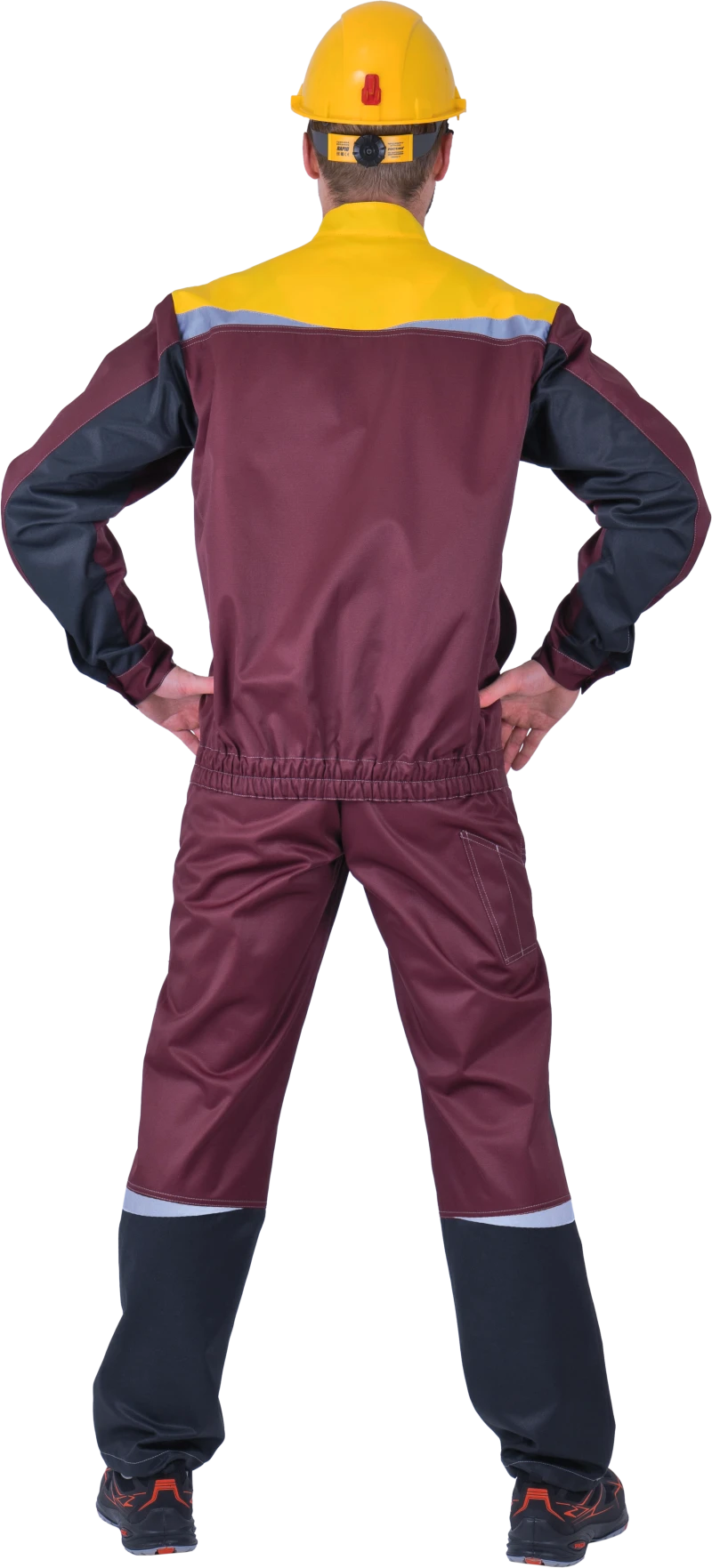 Костюм мужской КМ-10 ЛЮКС от механических воздействий и ОПЗ (куртка, полукомбинезон), бордовый/жёлтый/чёрный