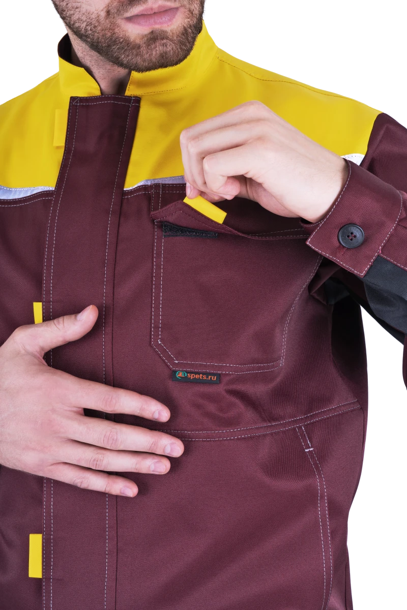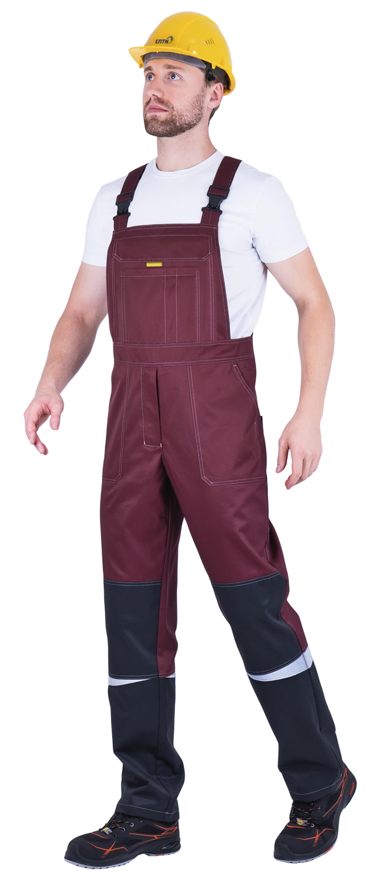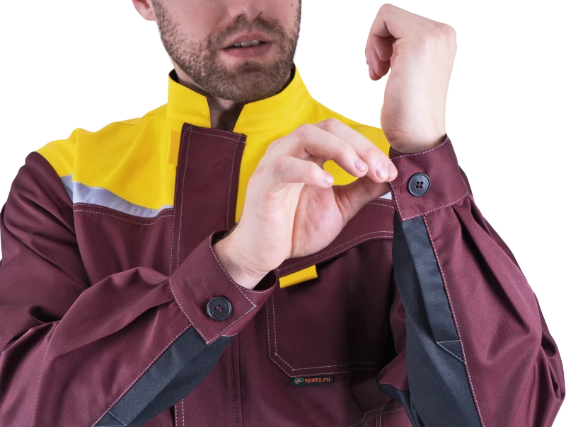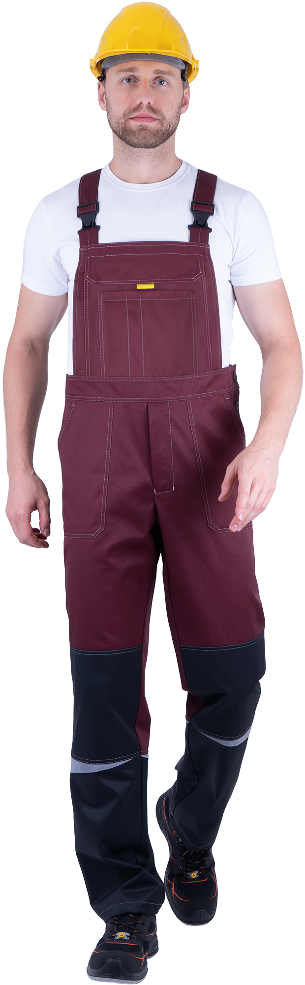 Костюм мужской КМ-10 ЛЮКС от механических воздействий и ОПЗ (куртка, полукомбинезон), бордовый/жёлтый/чёрный