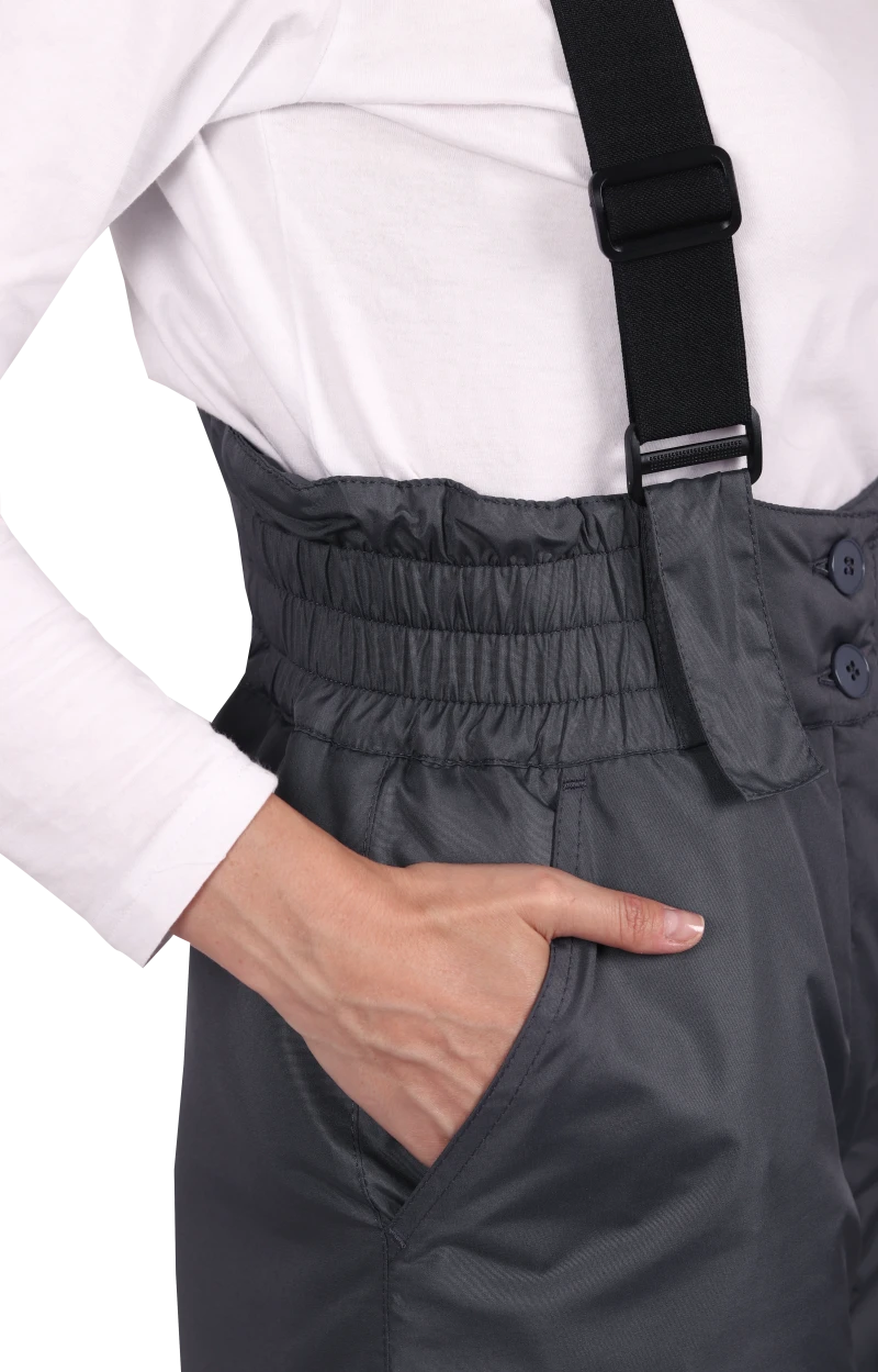 • высокий утеплённый пояс с застёжкой на две петли и две пуговицы