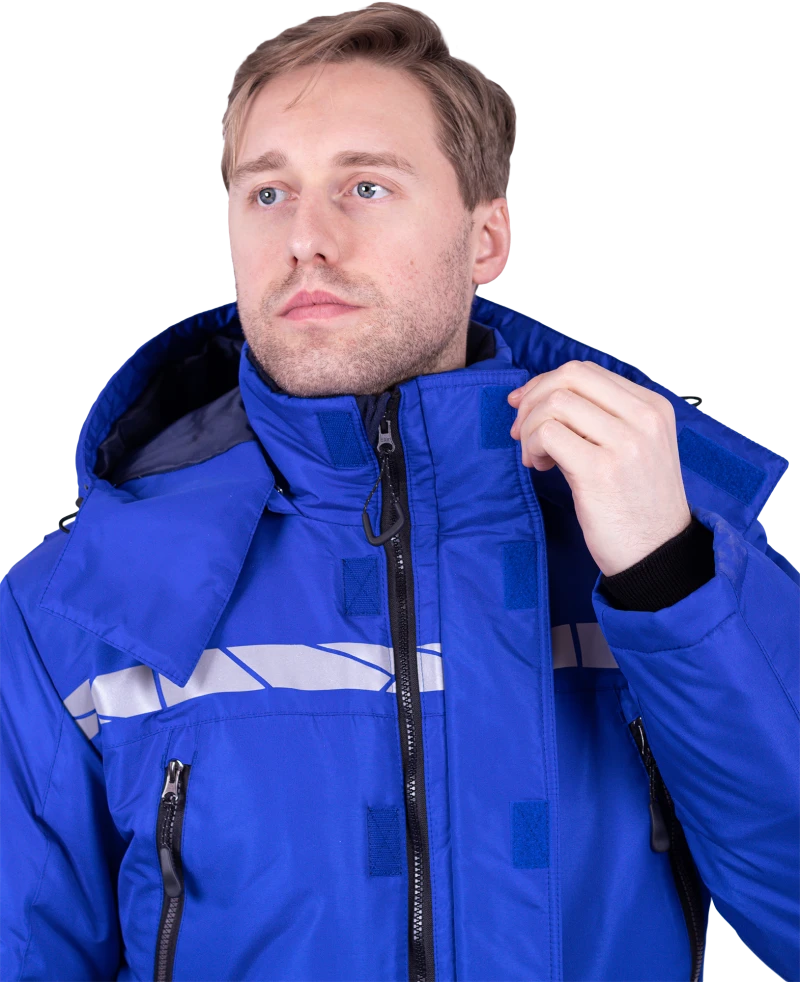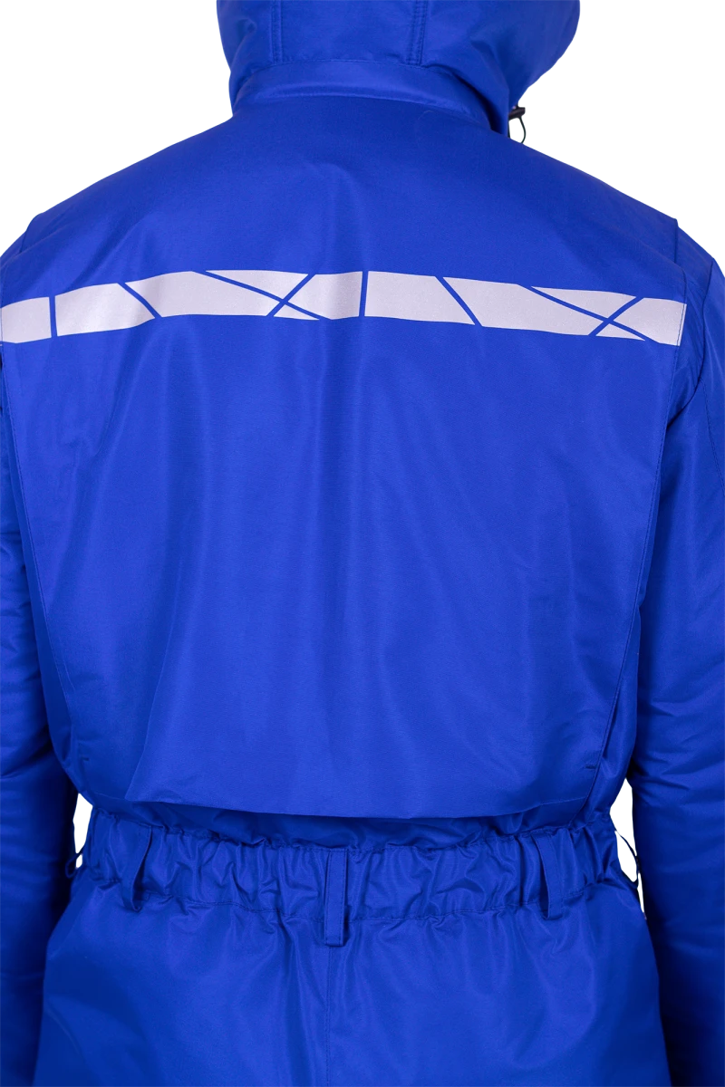 • термоклеевые световозвращающие полосы шириной 30 мм на кокетках полочки и спинки, внизу рукавов, брюк, на центральной части капюшона