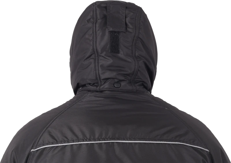 • утепленный пристегивающийся капюшон на кнопках с регулировкой объёма