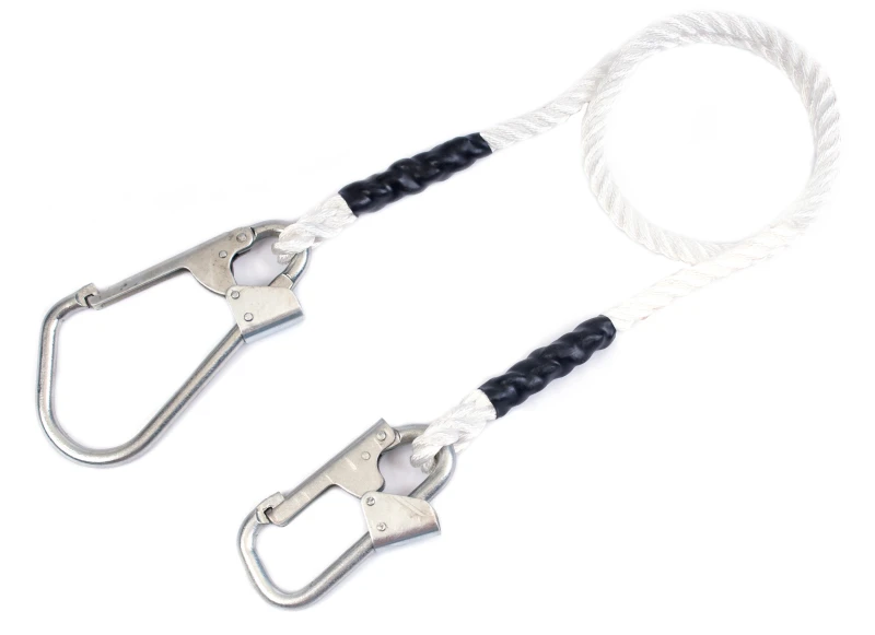 • Строп оснащён с двух сторон двумя карабинами для удобной работы и крепления к элементу крепления привязи и к анкерной точке.