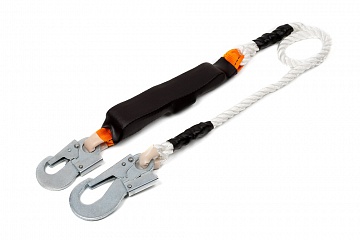 Строп из полиамидного каната ф13 мм с амортизатором и двумя карабинами используется как средство индивидуальной защиты от падения с высоты, может применяться как отдельная соединительная деталь, узел или компонент в системе с привязями и с анкерной точкой.